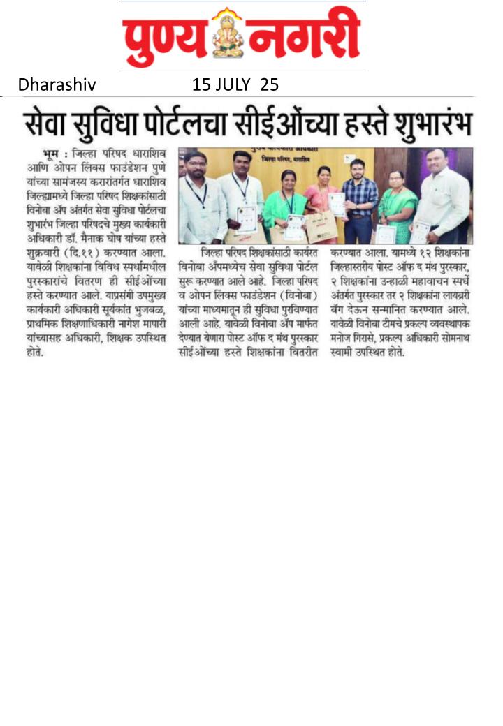 Piloted in Pune district in 2022, the Vinoba program has rapidly grown to 35 districts across Maharashtra, Chhattisgarh, Madhya Pradesh, and Bihar.